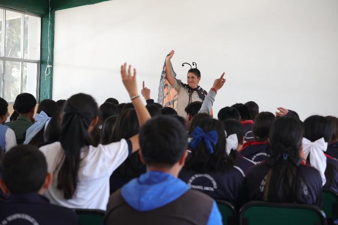 La charla “Insectos migratorios” fue impartida por Ek del Val de Gortari, destacada científica y divulgadora, quien compartió su experiencia profesional y conocimientos para despertar en las y los estudiantes la curiosidad y entusiasmo por la ciencia.