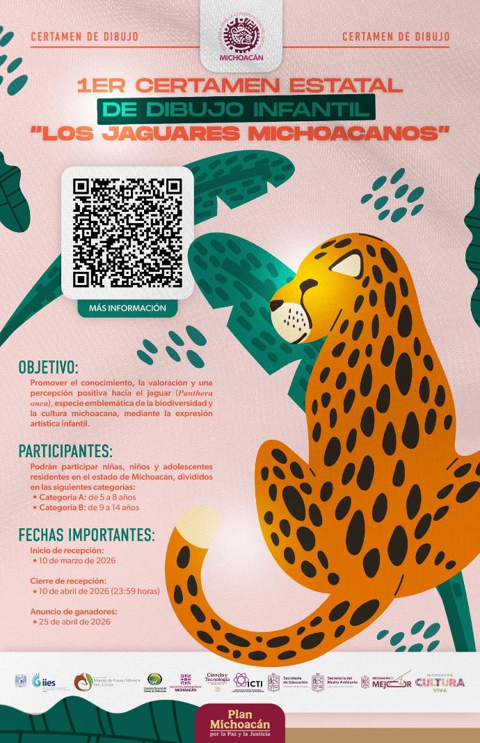La convocatoria completa puede consultarse en el enlace https://icti.michoacan.gob.mx/1er-certamen-estatal-de-dibujo-infantil-los-jaguares-michoacanos/.